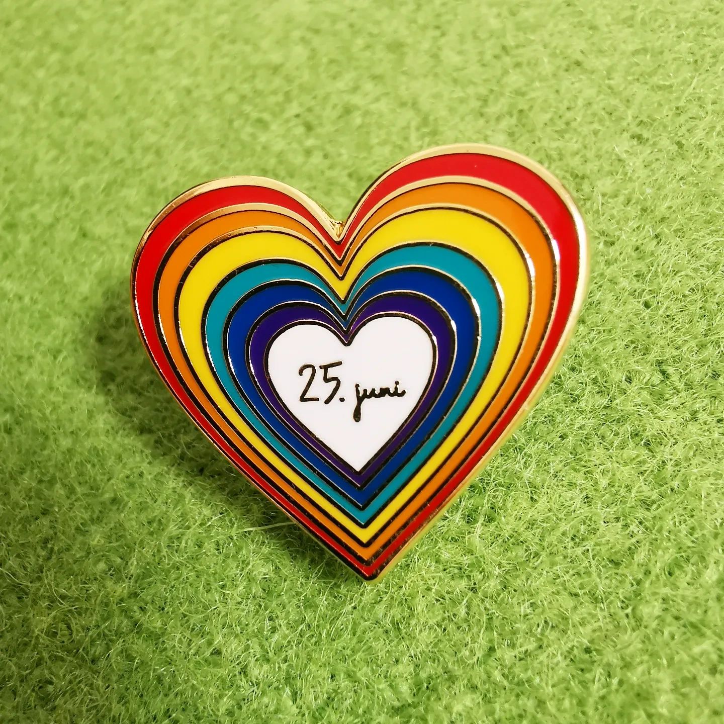 Bestill støttepins ved å sende epost til post@tjuefemtejuni.no. Oppgi navn og adresse. Pinsen koster 200 kroner, porto er inkludert. Vipps beløpet til #816502. Pins sendes fra oss når betalingen er mottatt.