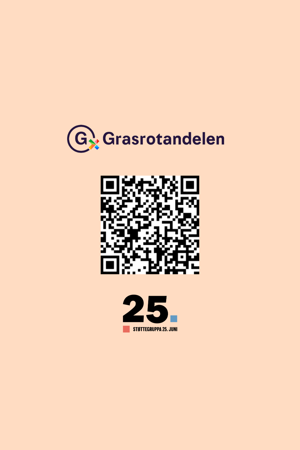 Scan QR-koden eller logg inn på Norsk Tipping for å registrere Støttegruppa 25. juni som din grasrotmottaker.